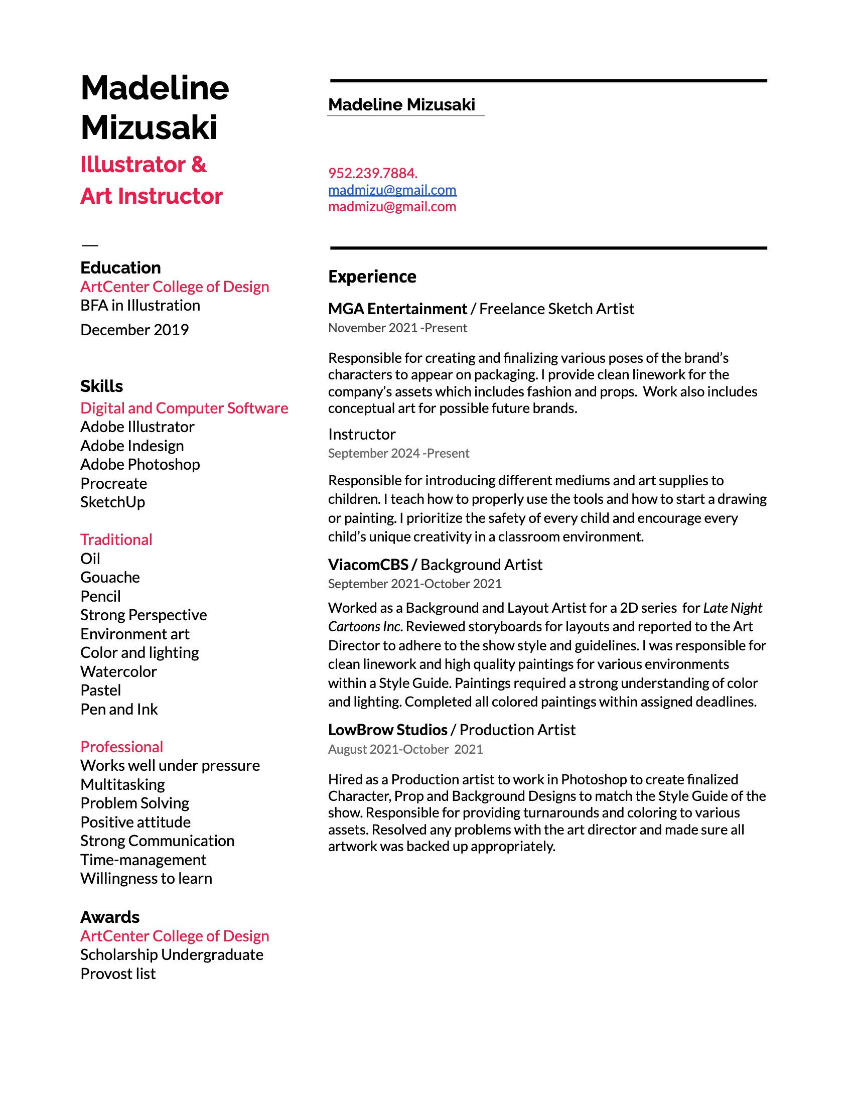 Madeline Mizusaki is an LA artist and illustrator. She has 3+ years of professional experience in Consumer Products and Visual Development. Her recent cliental includes MGA Entertainment and CBS Studios. In addition to illustration, she is balancing another passion as an art teacher for children.
